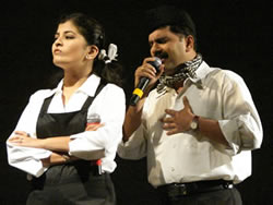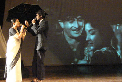 “Black and White” is a collage of performance on screen and stage. Aided by mega screen audio-visuals, the performers on stage blend with the celluloid, making music come alive on stage. The presentation format is reminiscent of a stage musical where the singers “act” the characters. The performance touches the finer aspects of the era through the medium of music, pictures, movie clips, anecdotes and trivia.
